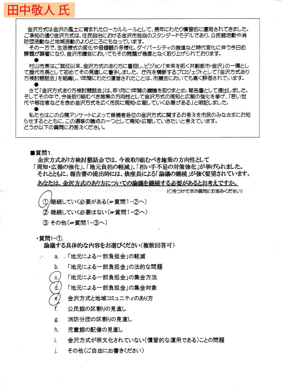 回答いただきましたのは以上の4名の方で、マスコミであわせて報道されていました ・ 中村 高士 氏 にもアンケートをお渡ししてありますが回答はありませんでした。