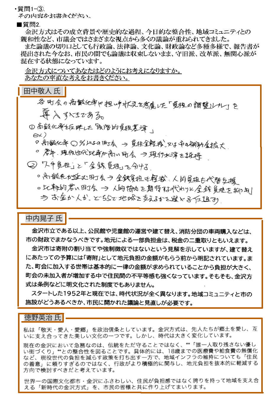 現在予測されている候補者の方へお届けしたアンケートの回答をいただきました