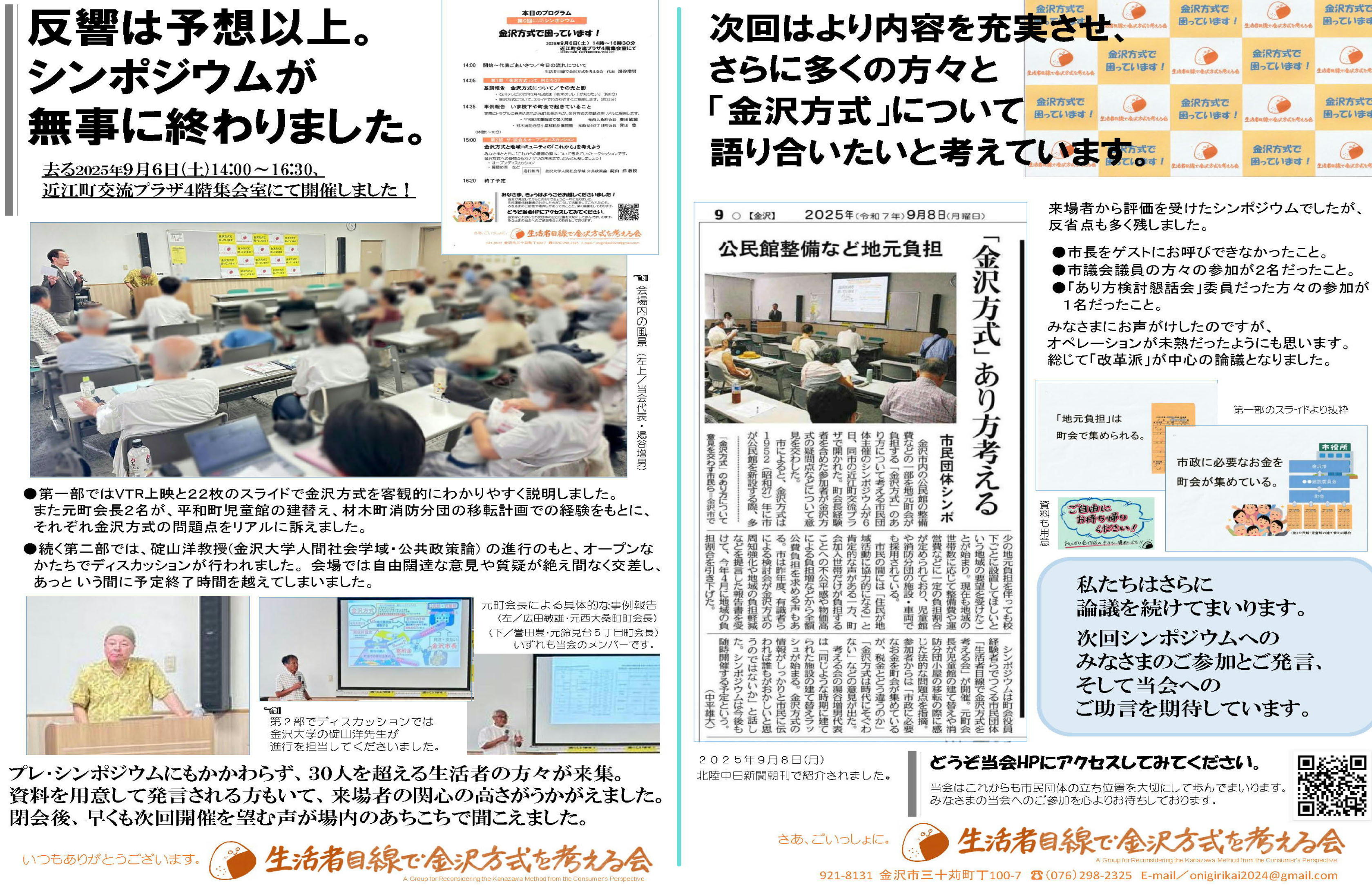 A Group for Reconsidering the Kanazawa Method from the Consumer's Perspective