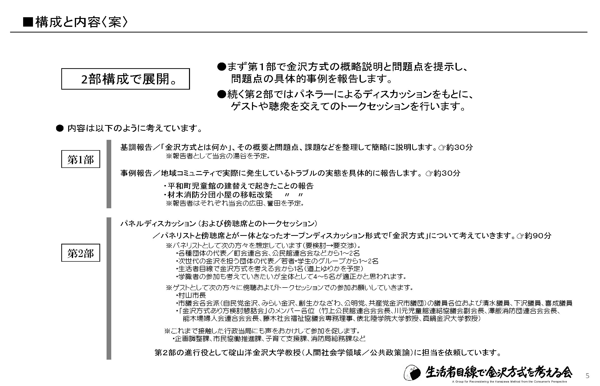 ■まず第1部で金沢方式の概略説明と問題点を提示し、