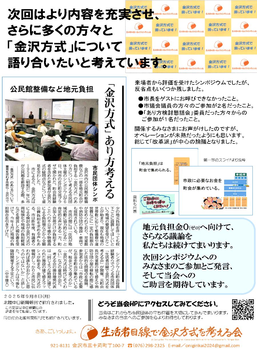 第 0 回キックオフ・シンポジウム「金沢方式で困っています!」