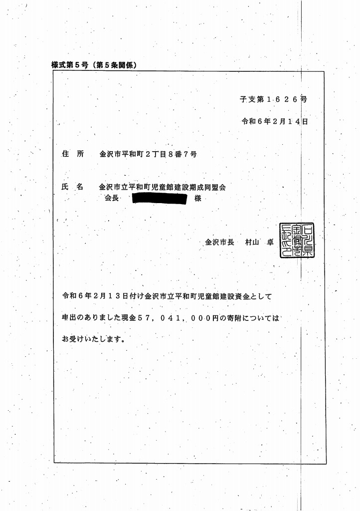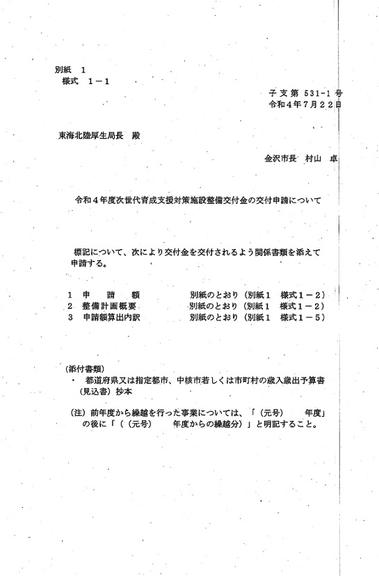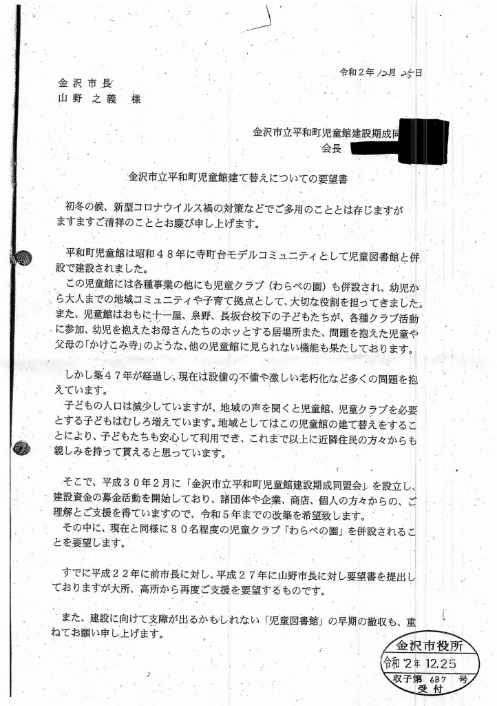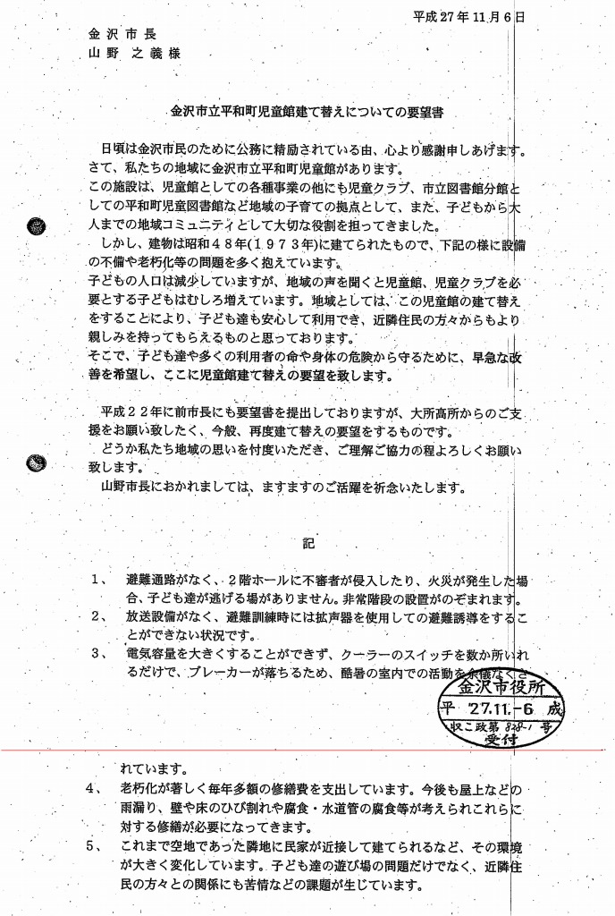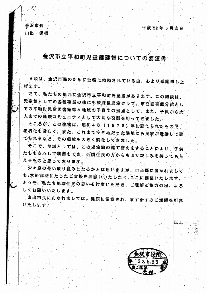 金沢市と建設協議が成立すると、所定の要望書を求められます