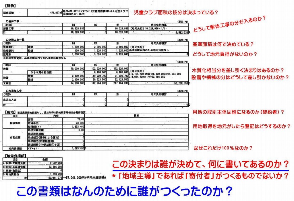 地元負担を前提とするがゆえに児童館としての満足のいくものが提供されたのかなどが地域へ知らされているのだろうかなど、行政が計画して行政の責任で地元合意をとりながら建設しているのだろうか、地元が負担金を出しているということで、本来の児童館機能が地元要望で抑えられることは無かったのかなど気になることもある