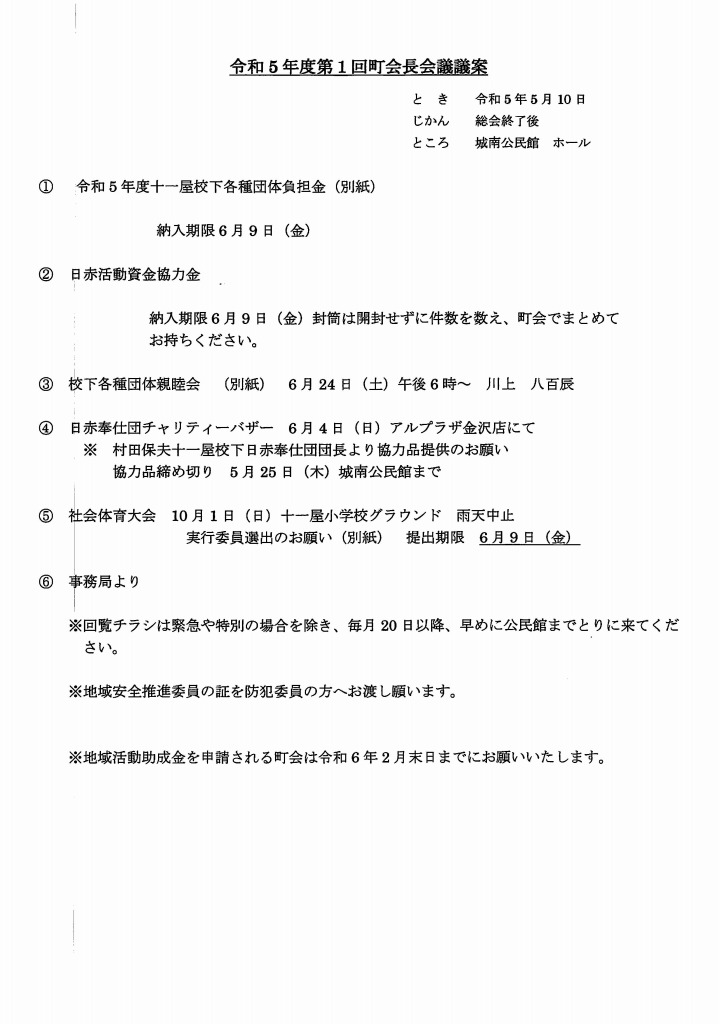 校下の町会長を集めた会議で「負担金」の請求を行います