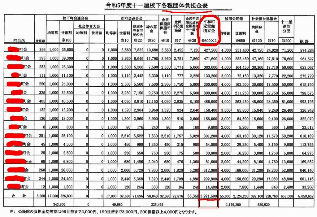700万円です、ここの関係町会世帯数の合計は「約20000世帯」なので、