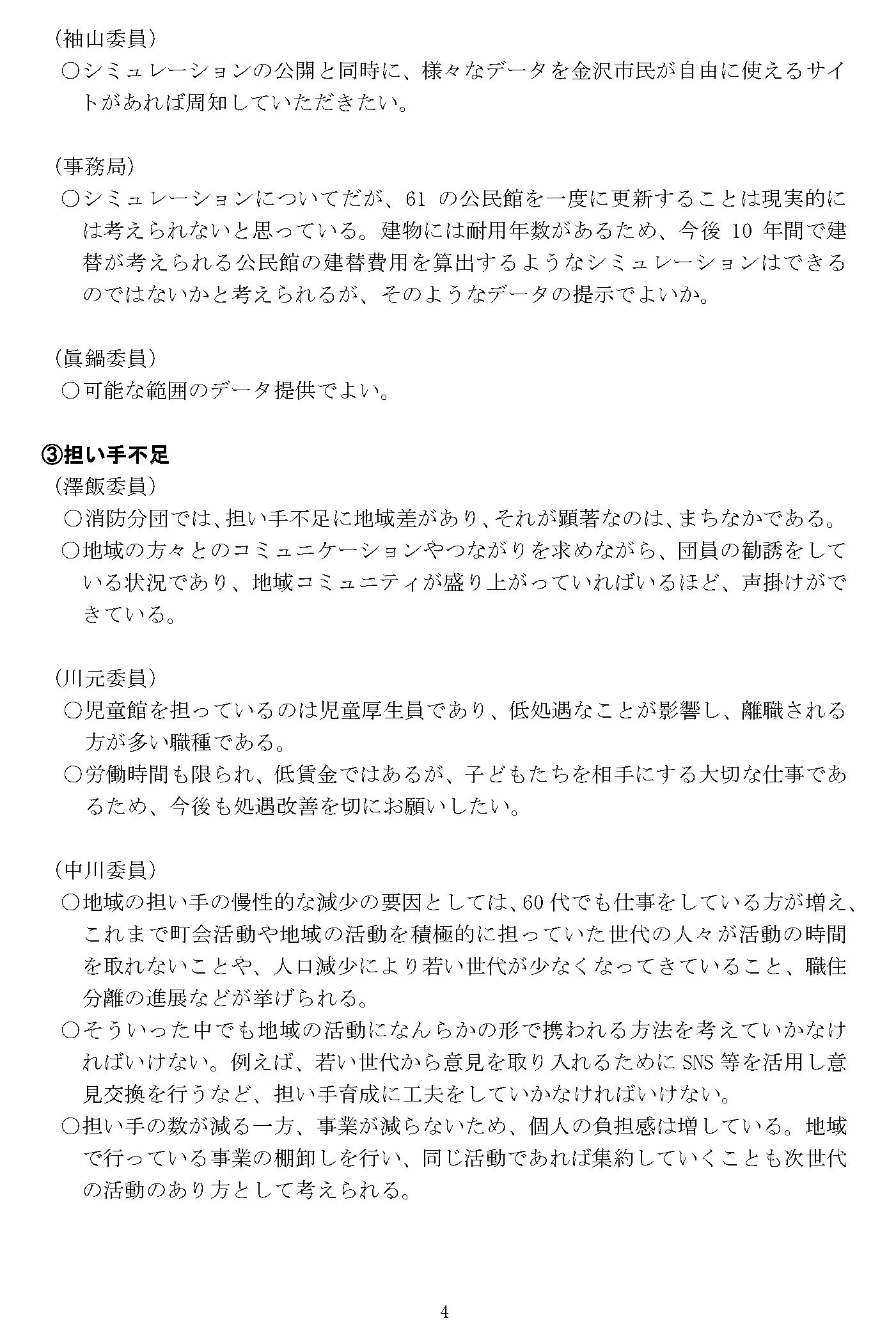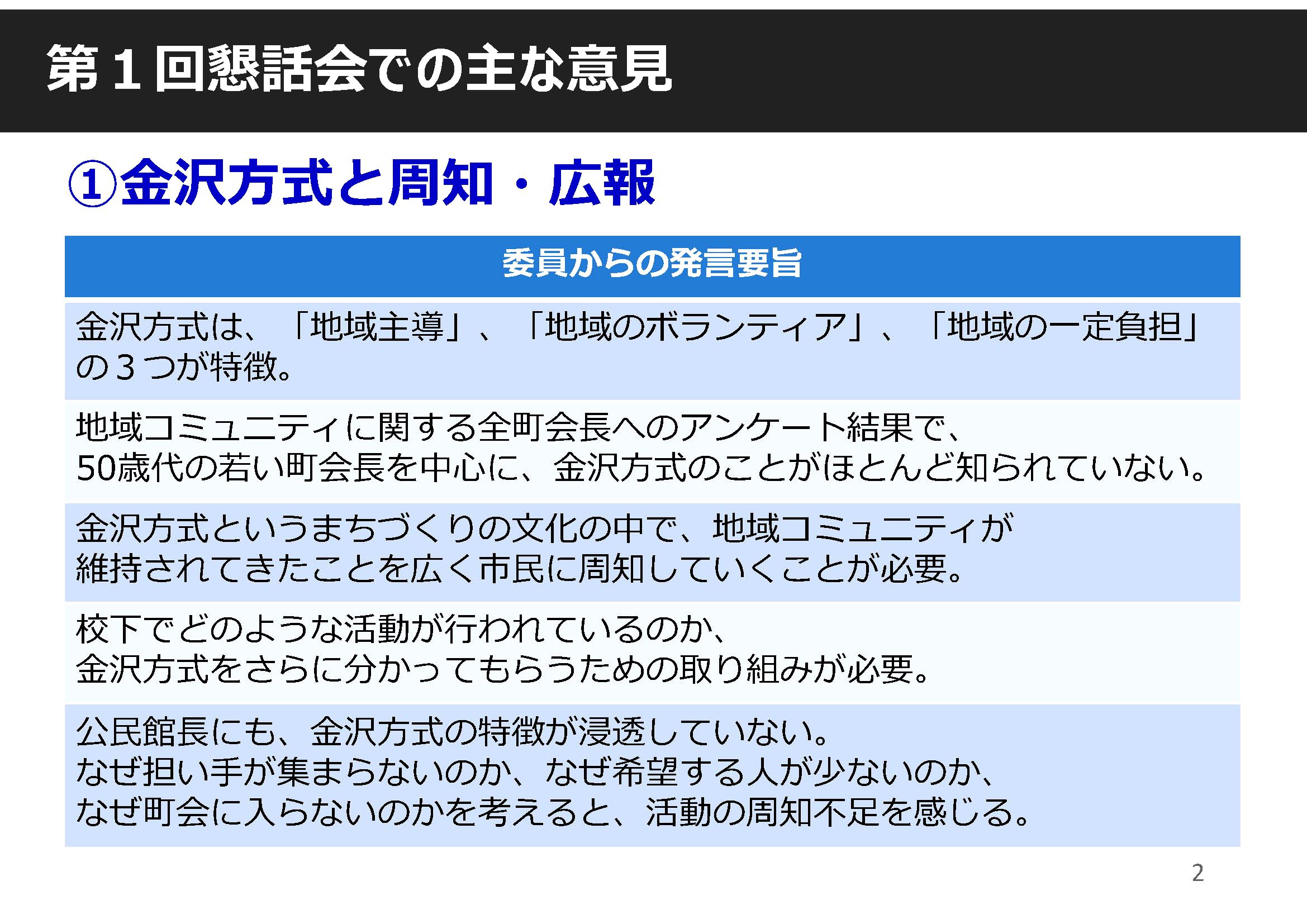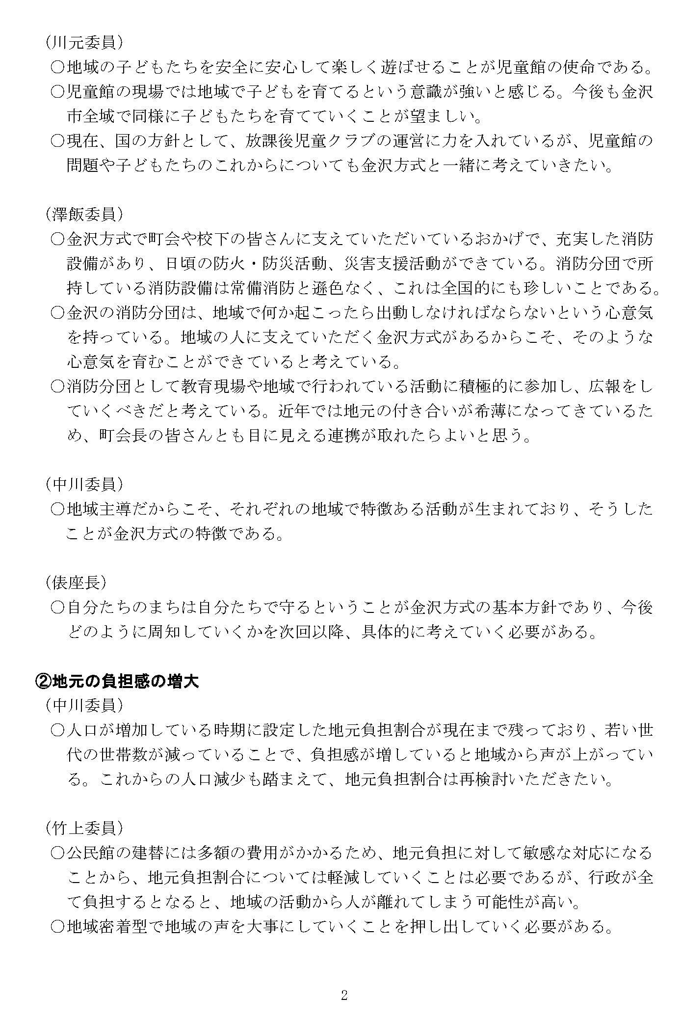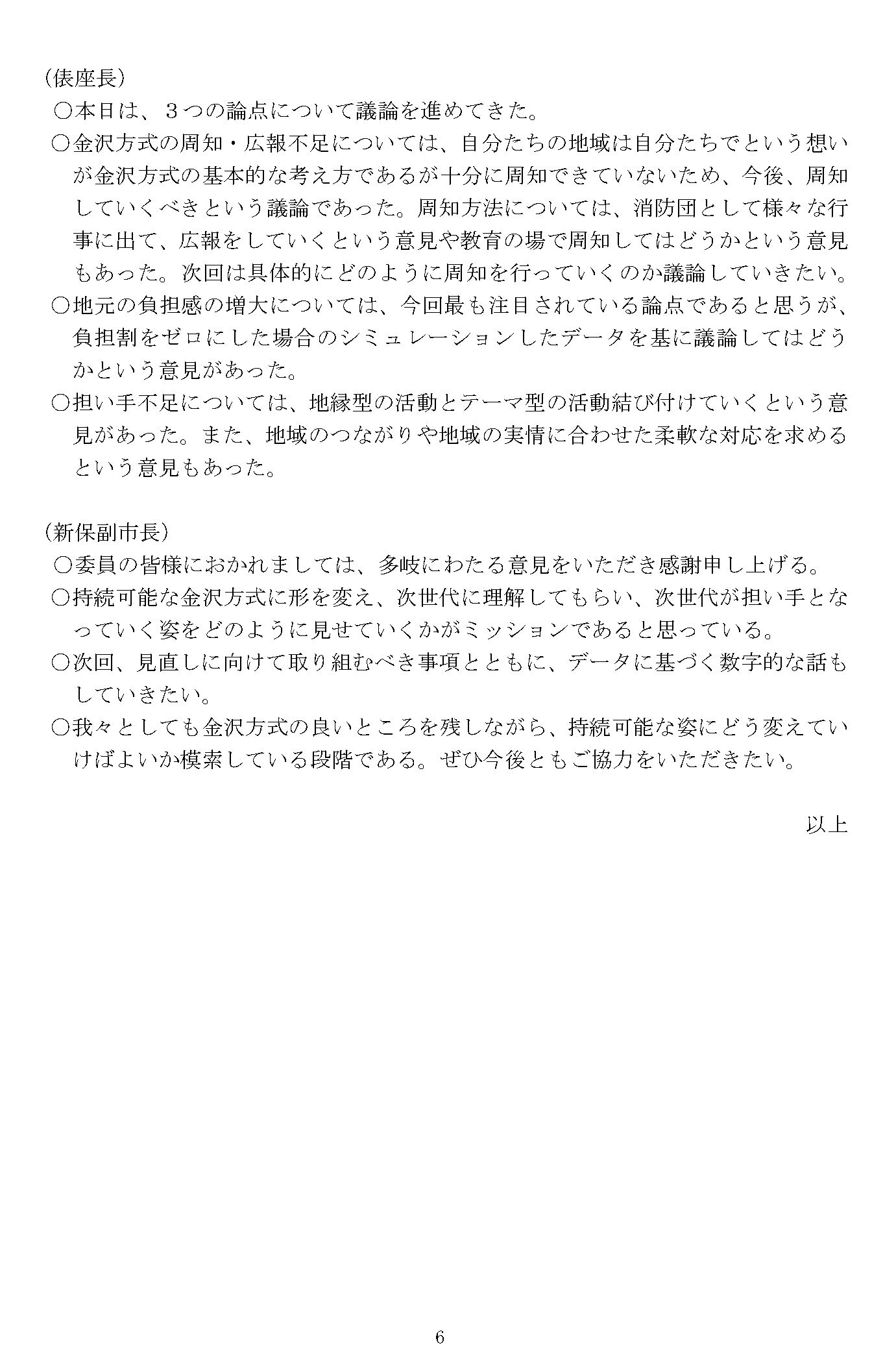 ○自分たちのまちは自分たちで守るということが金沢方式の基本方針であり、今後どのように周知していくかを次回以降、具体的に考えていく必要がある。