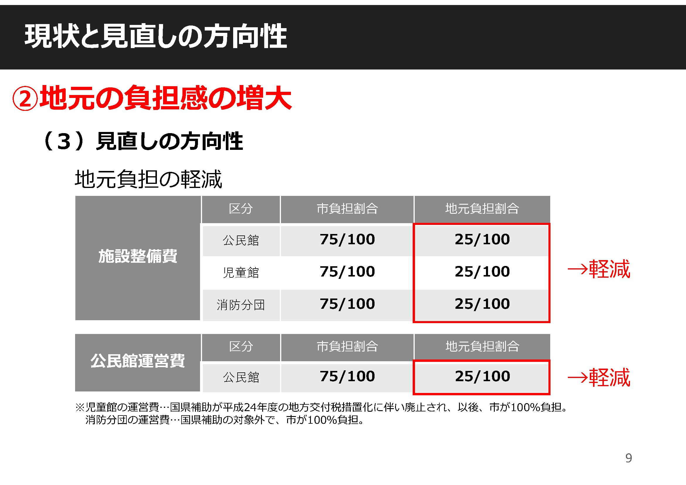 ②地元の負担感の増大 : 施設整備及び公民館運営における地元負担の軽減