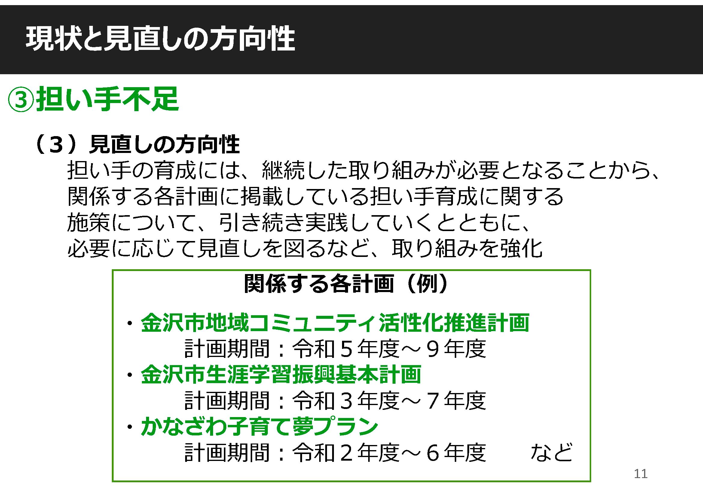 ③担い手不足 : 関連する計画の継続した実践及び計画の一部見直しと取り組みの強化