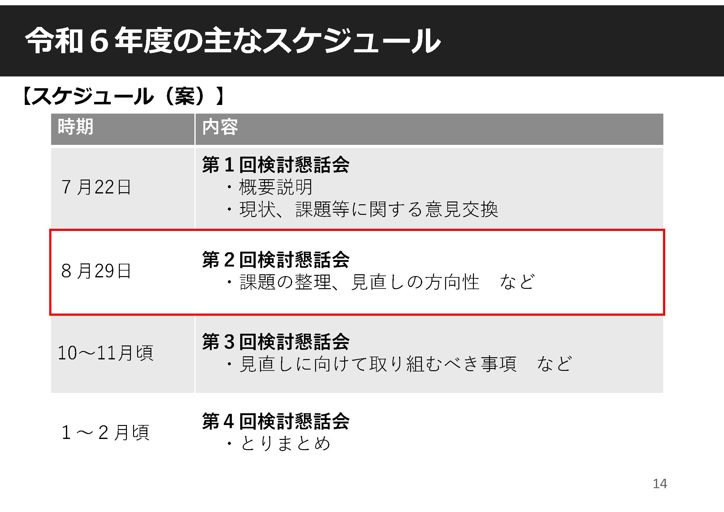 10~11月頃 : 第3回検討懇話会.見直しに向けて取り組むべき事項など
