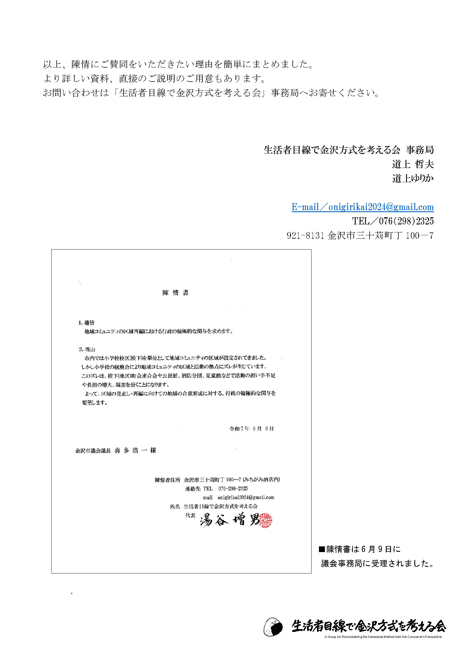 お問い合わせは「生活者目線で金沢方式を考える会」 事務局へお寄せください。